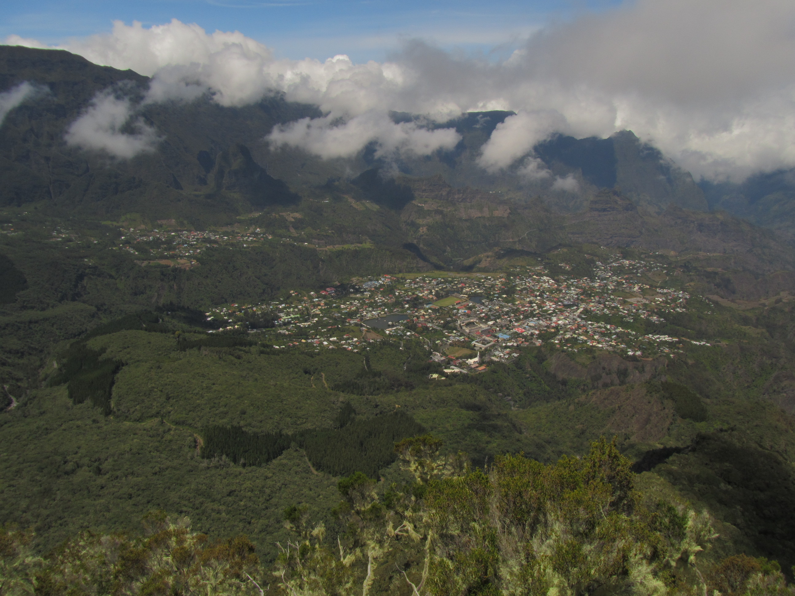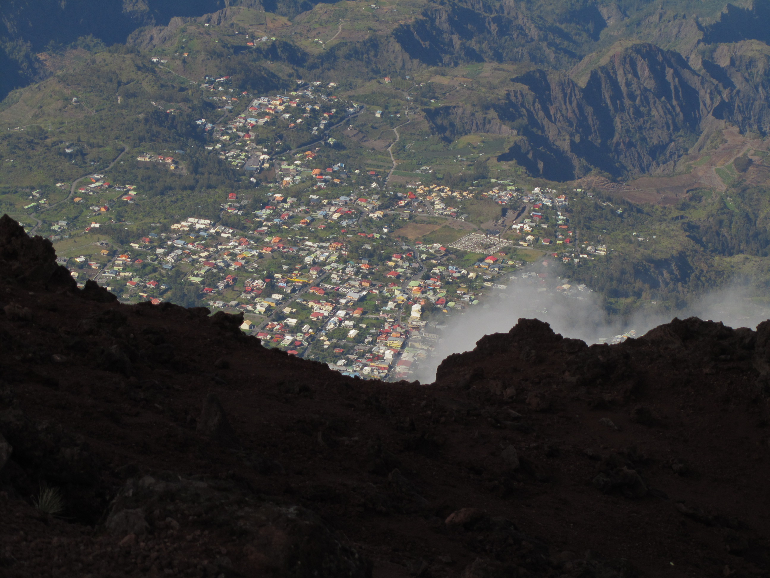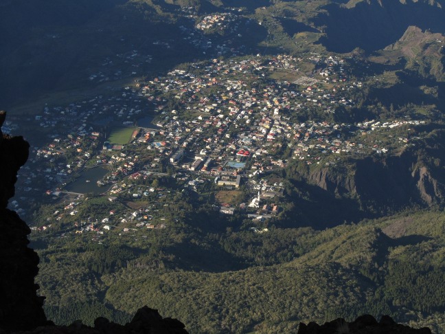 Cilaos vu des environs du sommet: 1800m de dénivelé depuis