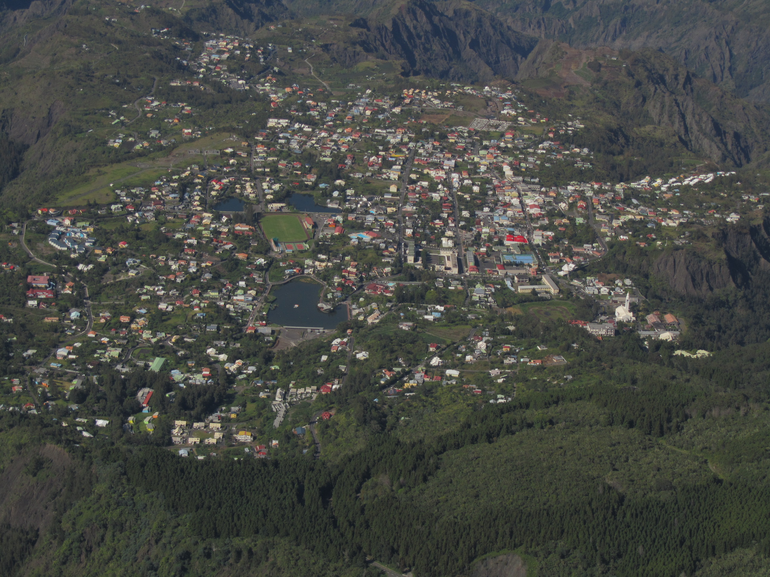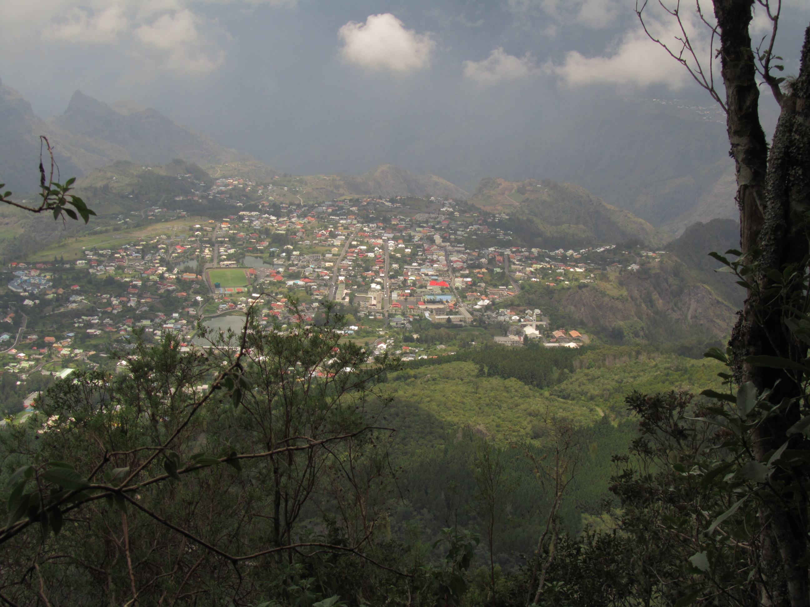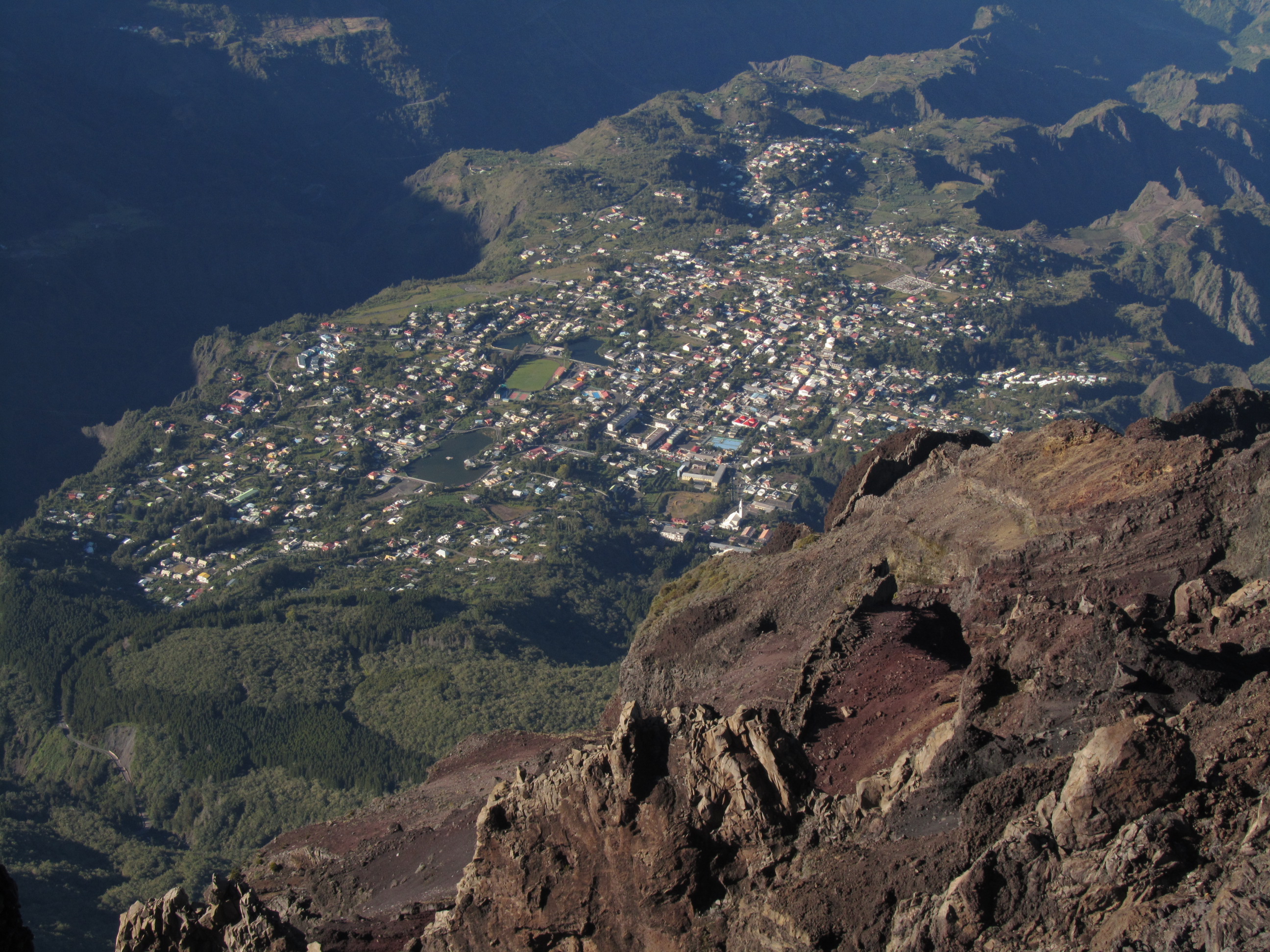 Cilaos vu des environs du sommet: 1800m de dénivelé depuis
