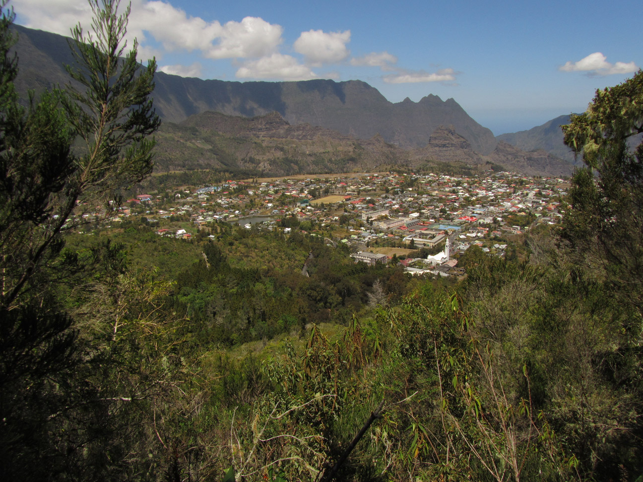 Cilaos en fin de saison sèche depuis Plateau des chênes (en haut du sentier)