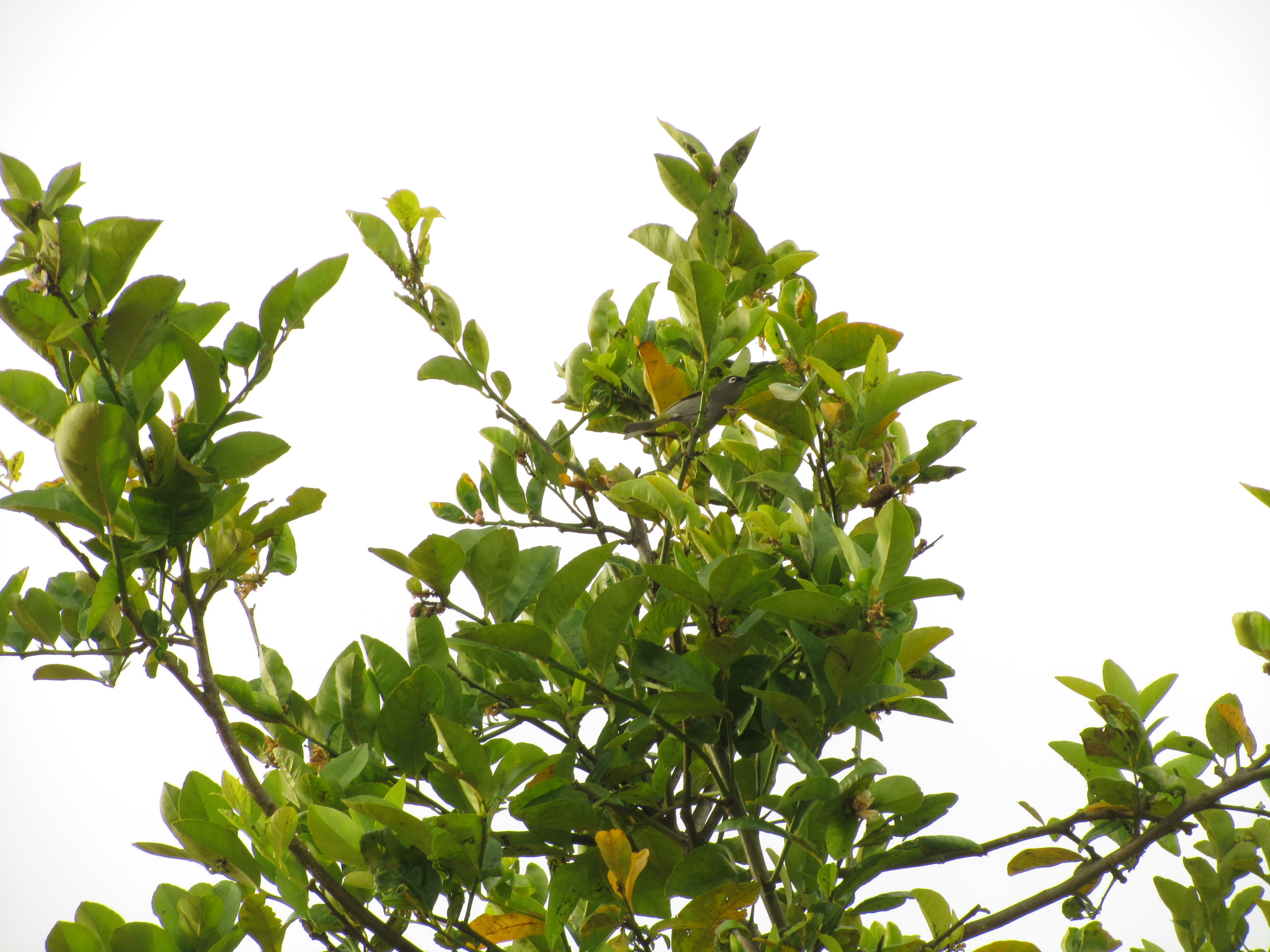 Zoizeau lunettes (oiseau vert) dans le citronnier.