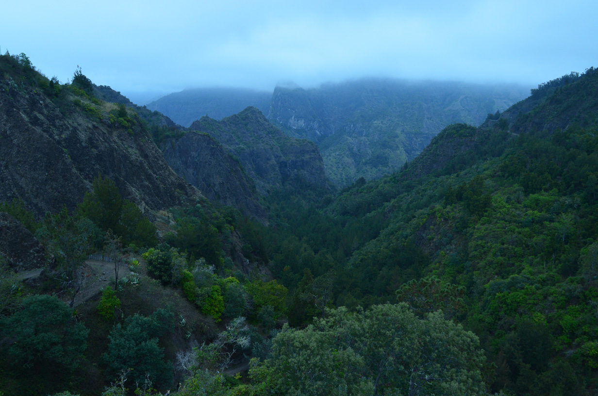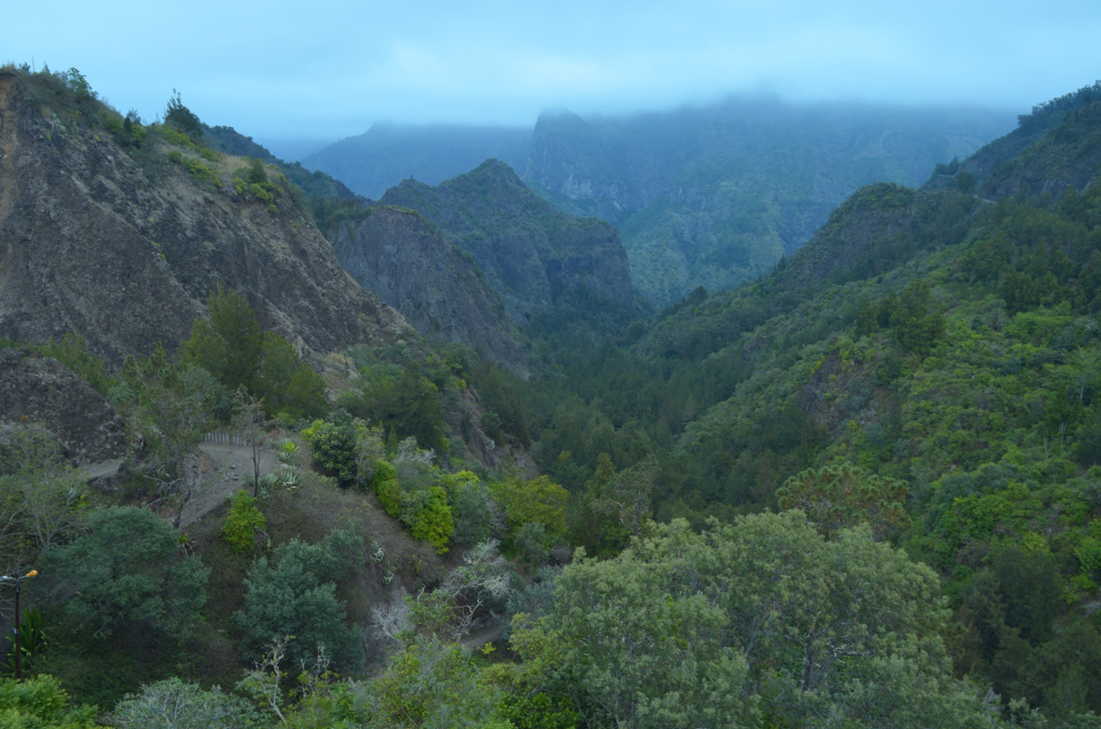 Bras des étangs vu depuis l'église, au fond, Piton de
