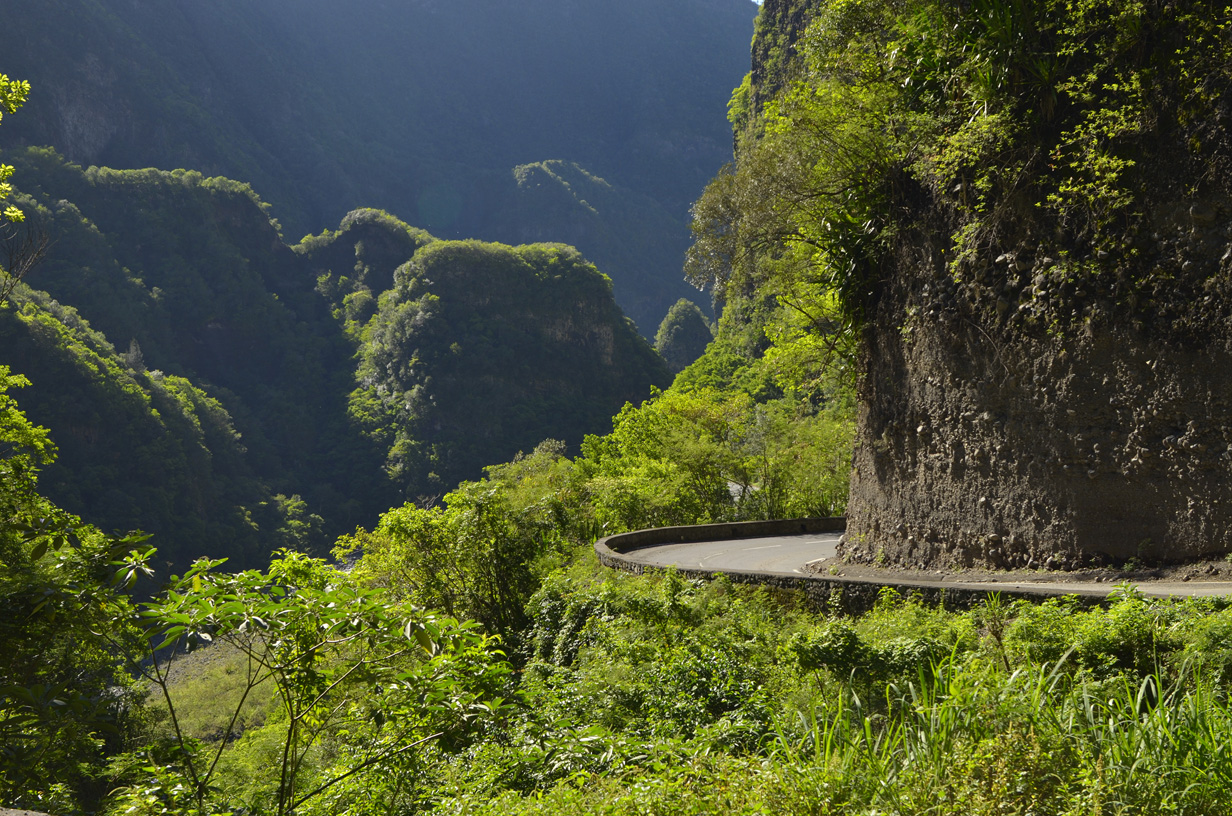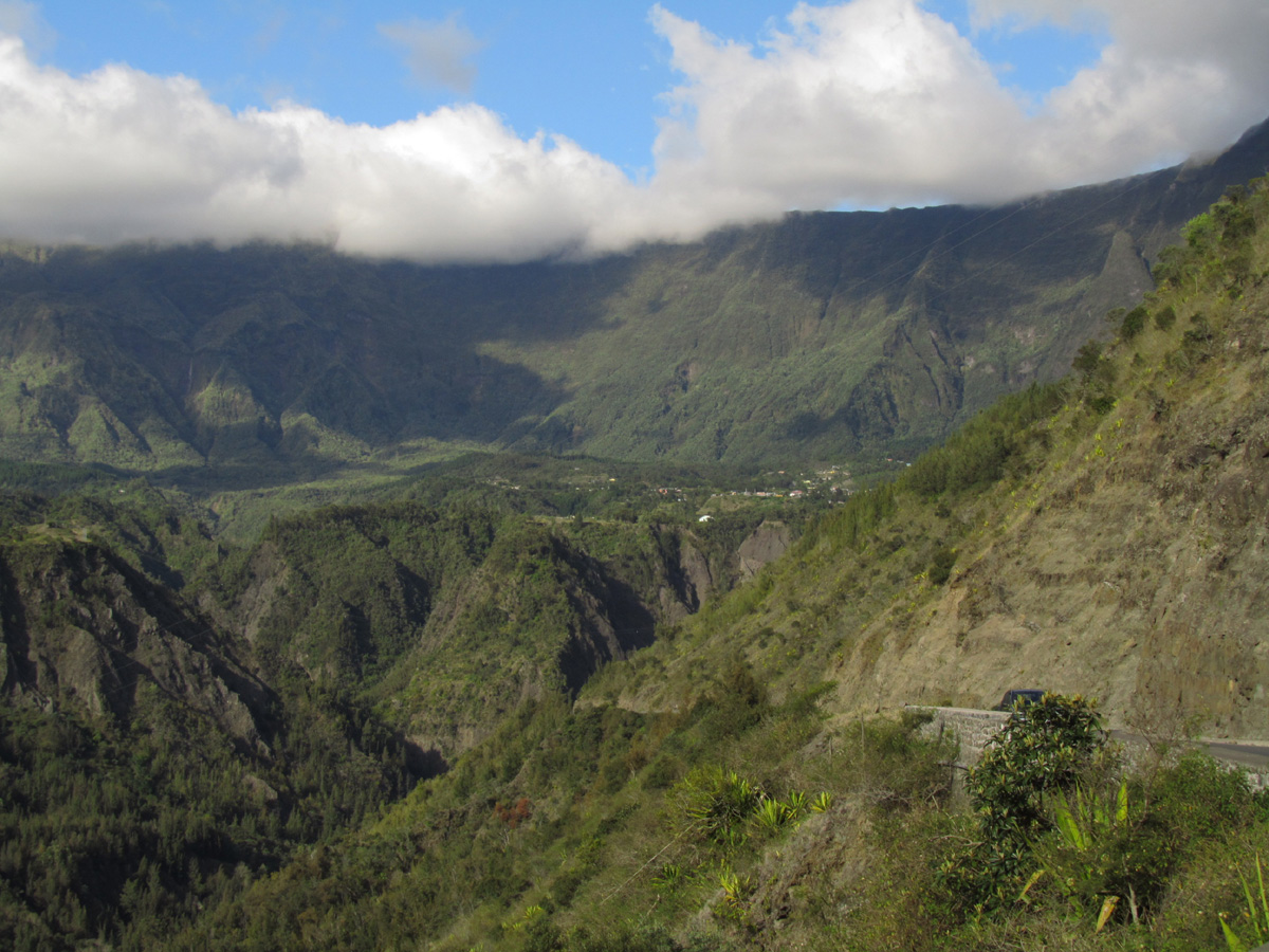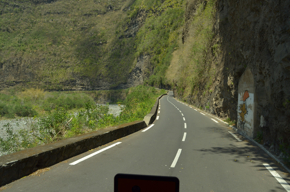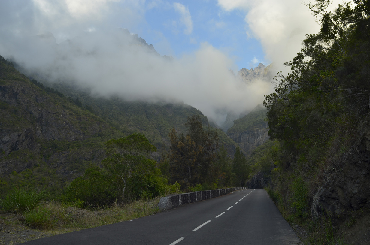 Route de Cilaos au niveau du dernier tunnel, vue en direction de Bras
