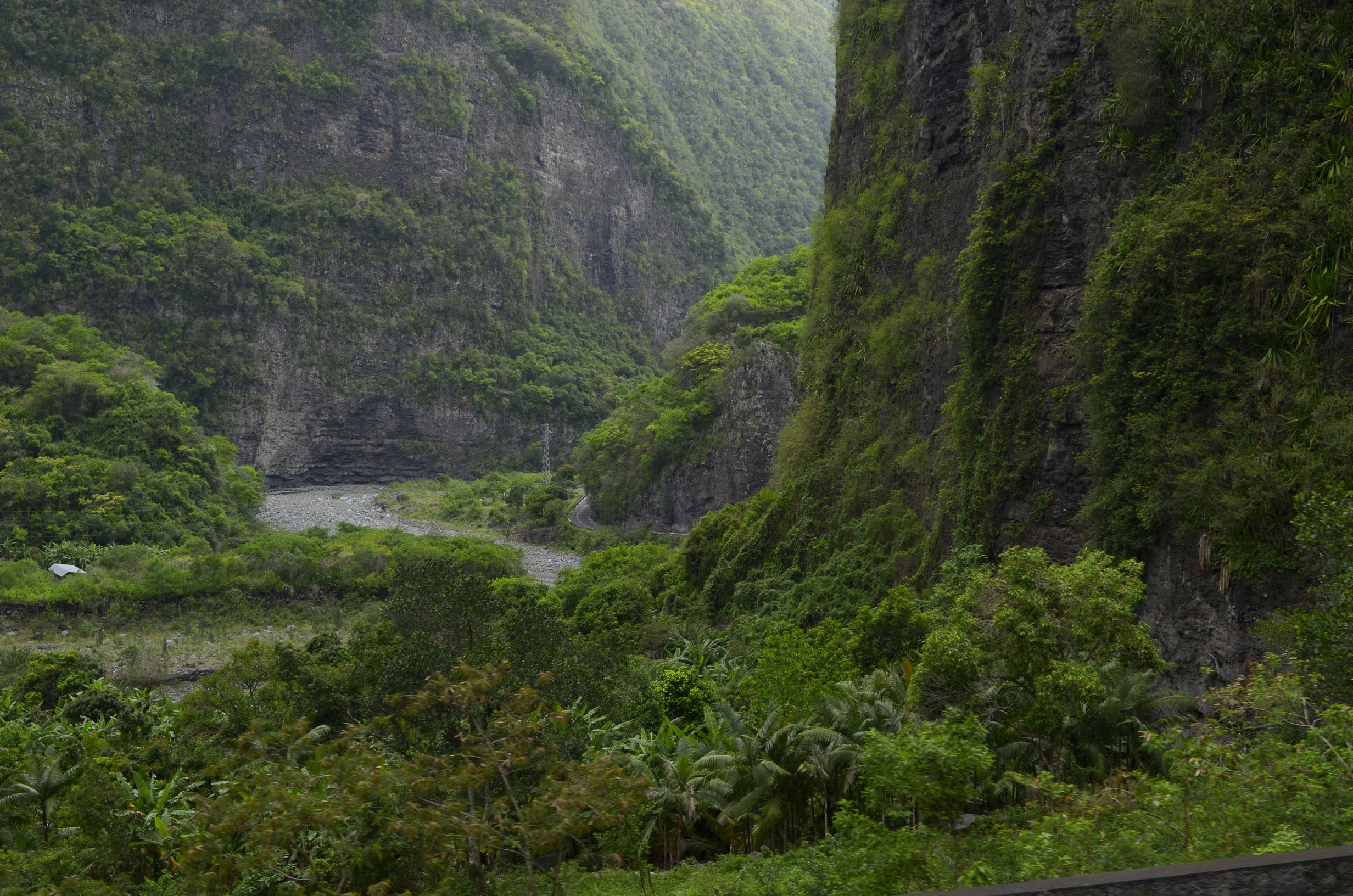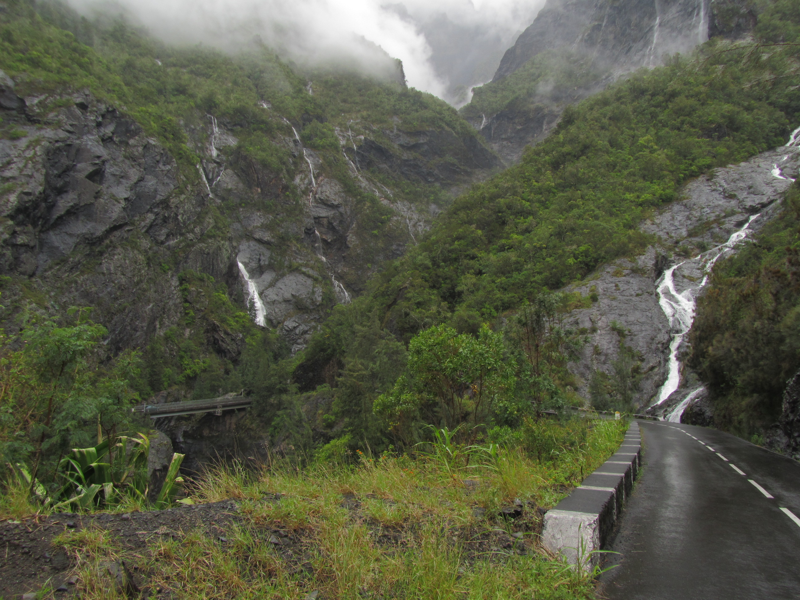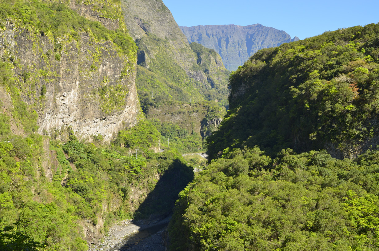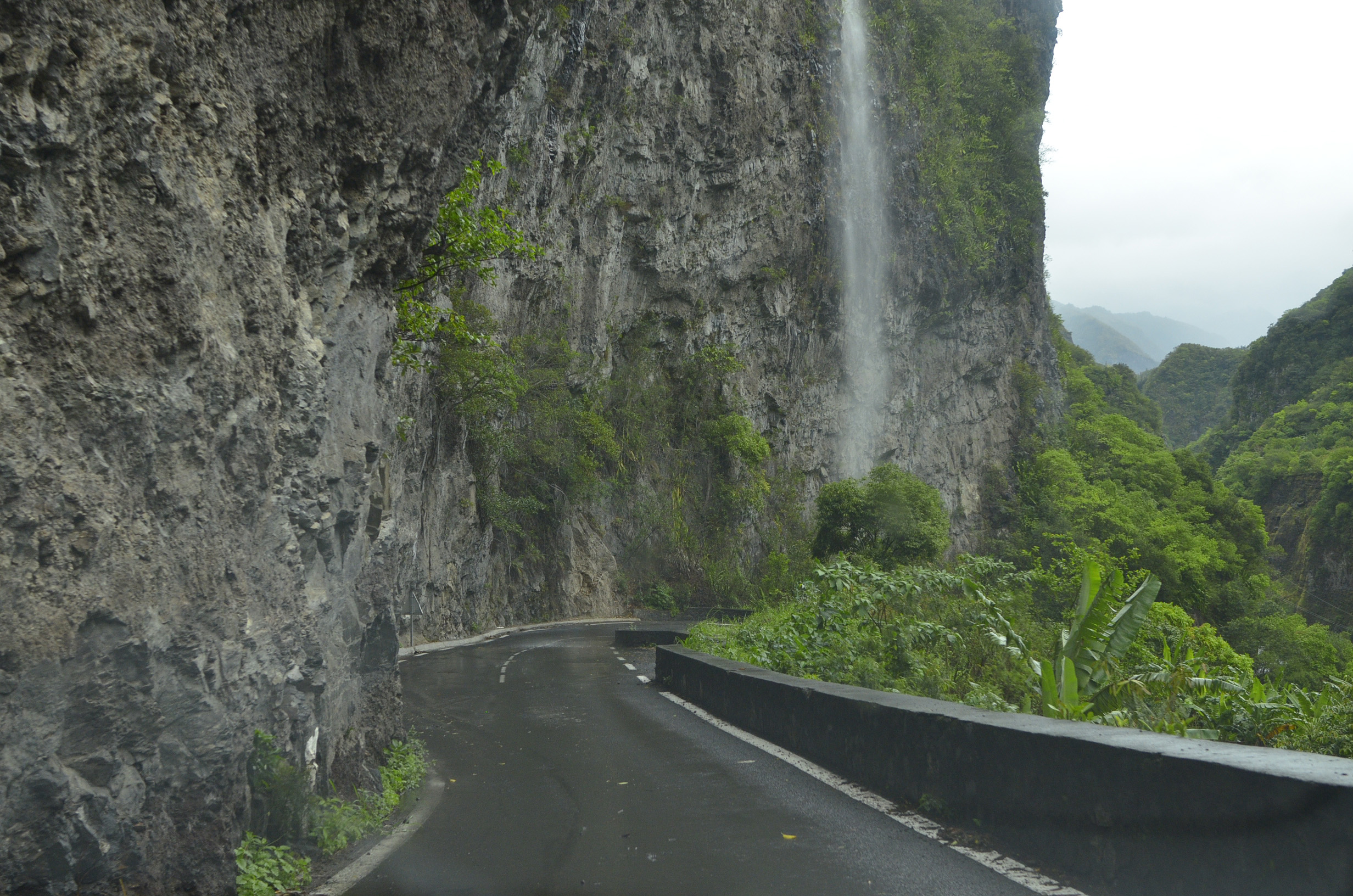 Route de Cilaos au niveau du dernier tunnel, vue en direction de Bras
