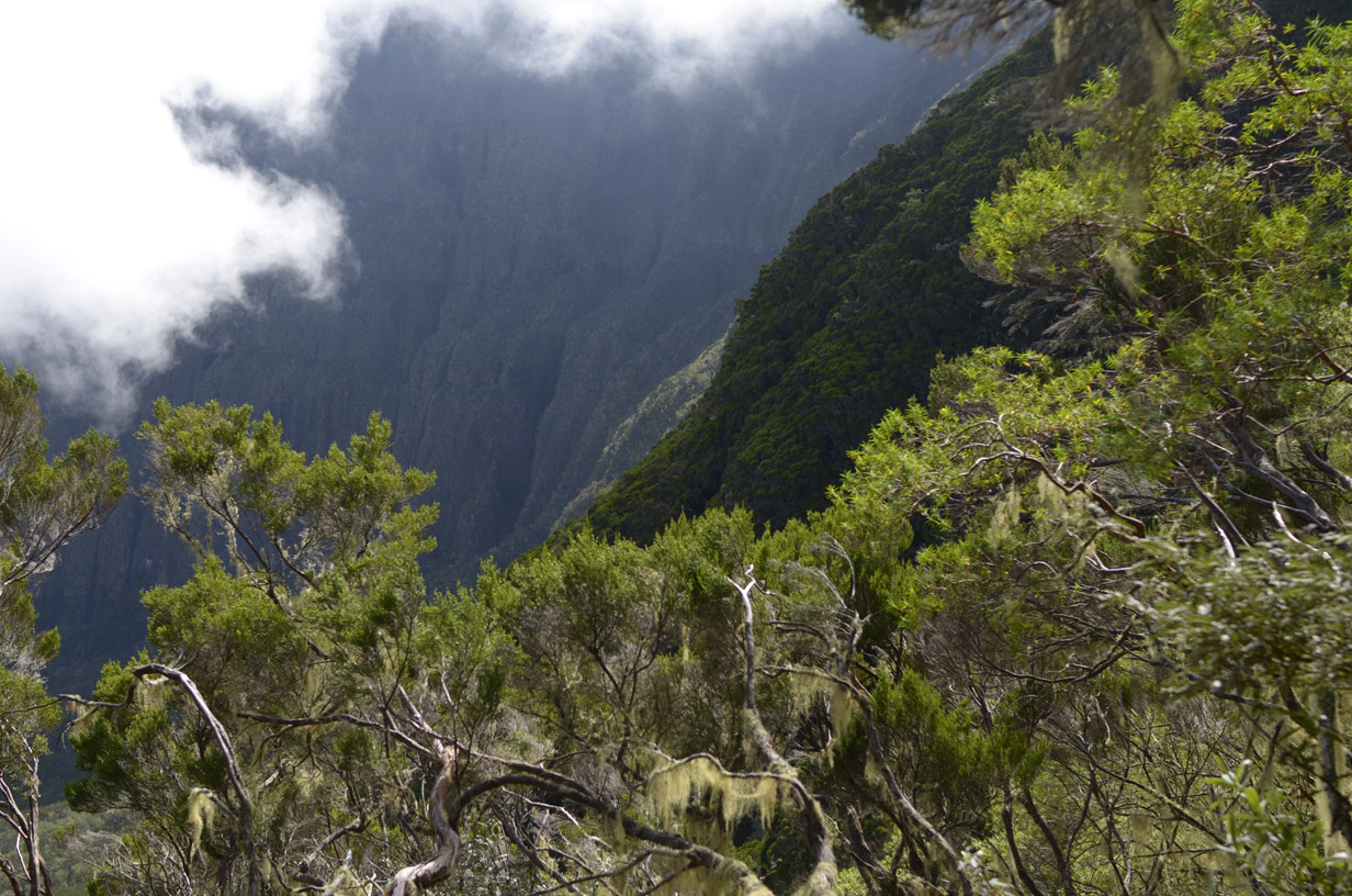 Vue sur le rempart sud du Piton depuis la descente du Col Dufour