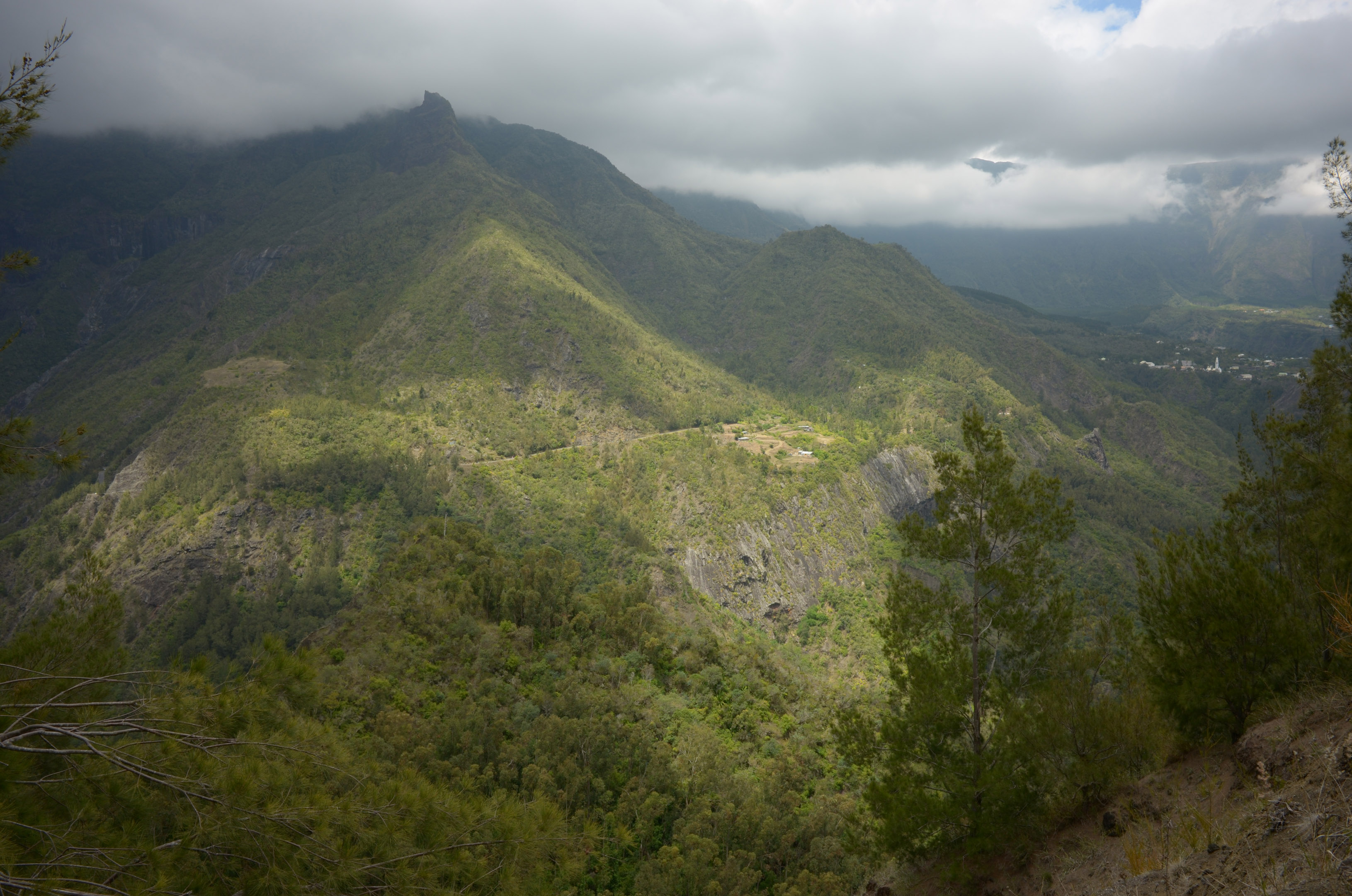Cilaos vu de la Route de l'Ilet à Corde au niveau de Fleurs